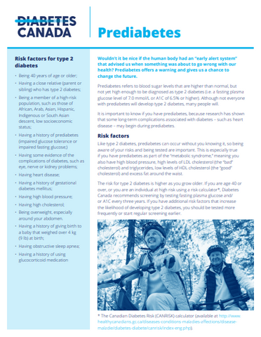 This resource provides an explanation of prediabetes and lists risk factors for developing prediabetes.