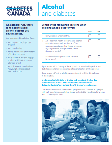 This educational handout from provides essential guidance for people living with diabetes who are considering alcohol consumption. It covers:
