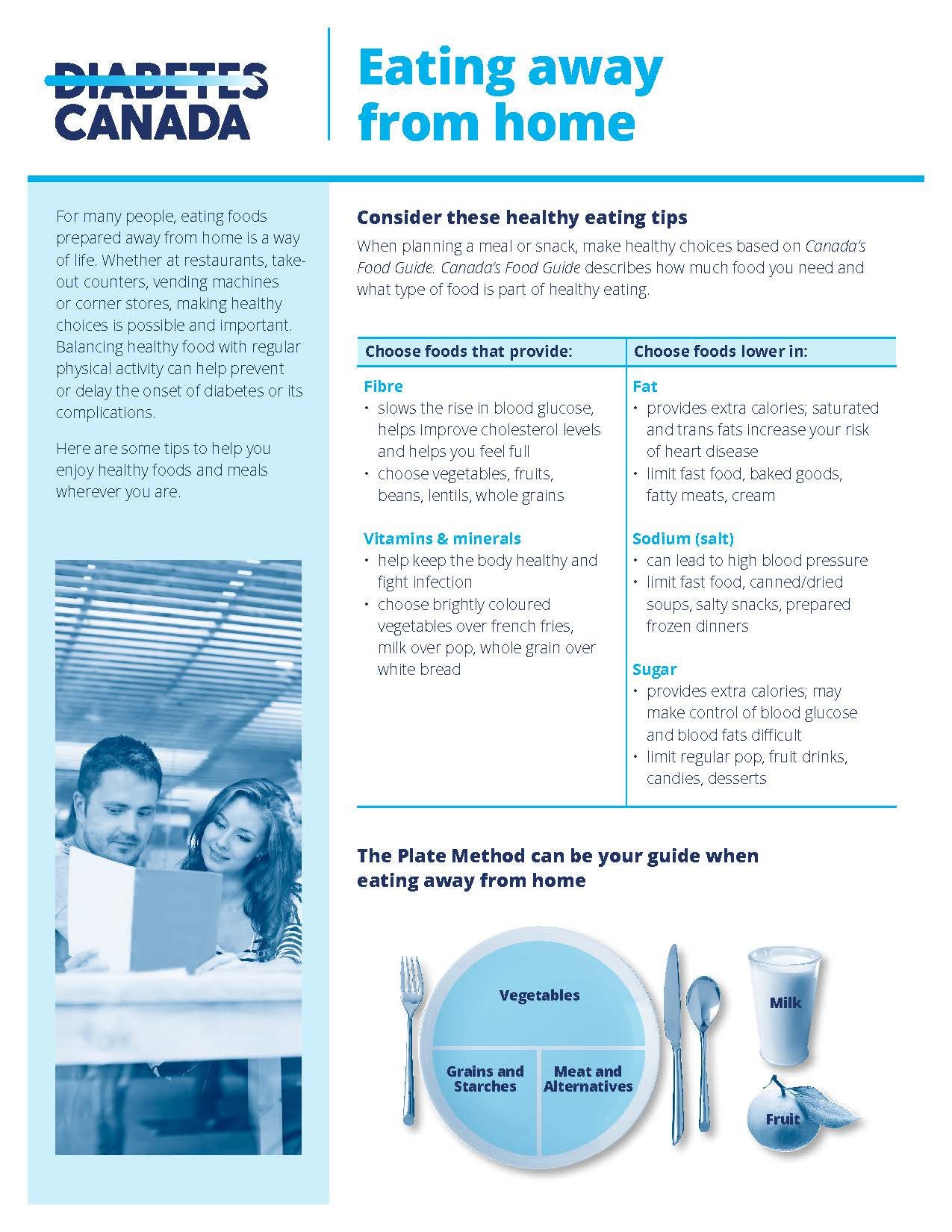 This resource provides information and helpful tips to make healthy food choices when eating out.